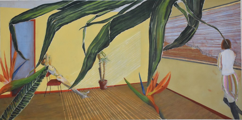 A series of tree painting recreating a clean and modern interior space. The main focus is displayed on nature, every painting has a window opened to an exterior view, and an interior contaminated by it. The private atmosphere is being invaded by nature’s proclamation of survival.