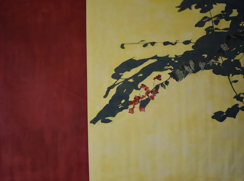 The main focus is located on the plant with its unrealistic and strong shadow printed on the bright wall. This cold and dark tone exist as a premonition for the dying nature.
